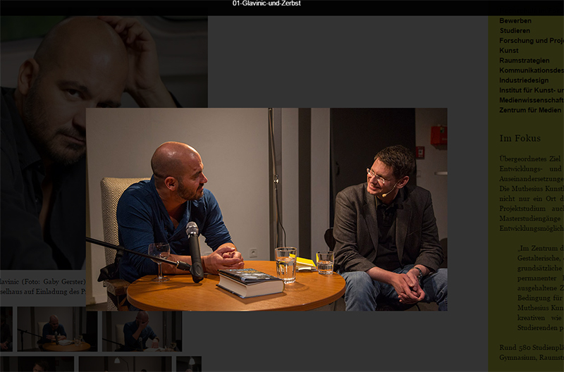 Auf der Webseite selbst werden zunächst nur ein paar als kleine Vorschaubilder angezeigt. Erst bei Klick auf eines der Bilder öffnet sich dann die eigentliche Galerie in einer Lightbox. Die Webseite bleibt dabei halbtransparent geöffnet und die Bildergalerie ist blätterbar.