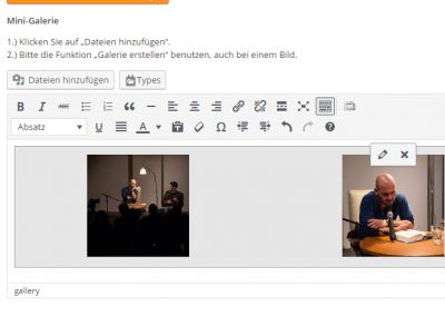 Und als Drittes klickt man noch einmal unten links auf „Galerie einfügen“, damit sie auch in dem Feld „Mini-Galerie“ eingebaut wird.