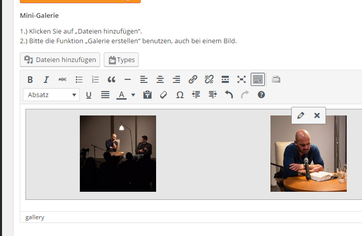 Wenn man aus irgendwelchen Gründen noch einmal an die Galerie heran muss, dann klickt man einfach drauf, so dass zwei kleine Icons sichtbar werden. Ein Bleistift und ein Kreuz.